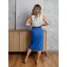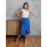 Силуэт прямой юбки настолько узнаваем и привлекателен для девушек и женщин любых возрастов и форм, что не нуждается в излишней рекламе. Прямую юбку называют универсальной моделью, которая подчёркивает плюсы женской фигуры. Ну а если за дело «берётся» лён – он привносит в изделие свои неповторимые отличительные особенности. Обратите внимание на представленную модель юбки из натурального льна! Характерный прямой силуэт прослеживается сразу. Однако, застёжка на-запах кардинально меняет визуальное восприятие, создавая стильную геометрию линий. Скошенная вертикаль застёжки позволяет продемонстрировать прелесть женских ножек. Модель хорошо фиксируется на талии благодаря поясу, на котором расположены шлёвки. При желании можно образ дополнить стильным ремнём. «Французская длинна» - чуть ниже линии колена – универсальна для женщин самого разного роста. Жатая текстура льна – неподражаема. Именно она задаёт стиль всему образу.