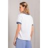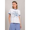 Блуза-футболка с принтом выполнена из мягкого хлопкового полотна. Горловина и манжеты отделаны контрастной резинкой.
