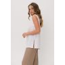 Блузка женская без рукавов прямого силуэта длиной ниже линии бедер. Вырез горловины V-образной формы. В боковых швах разрезы.