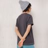 Блуза - футболка прямого силуэта, формы оверсайз, удлиненная. Плечо спущенное. Рукав втачной, короткий. По низу рукава и футболки трикотажная строчка с застилом контрастными нитками.