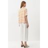 Блуза прямая. Горловина лодочкой. Горловина, низ рукавов и низ блузы, обработаны притачной обтачкой. По низу полочки, с левой стороны, притачная деталь - эмблема.