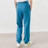 Блуза, свободная. Верхняя часть полочки с кокеткой, уходящей в длину рукава. Спущенная линия плеча. Спинка прямая, рукав реглан. По боковым швам разрезы, при необходимости, закрываются молнией. Горловина круглая, с притачной обтачкой из кашкорсе. Низ блузы оформлен открытым срезом, трикотажной строчкой. Брюки широкие, свободные, чуть заужены к низу, заканчиваются мягкой манжетой из кашкорсе.. Пояс брюк притачной, из двух частей. Передняя часть пояса из кашкорсе, уплотненная резинкой. Задняя часть пояса из основной ткани. собрана на резинку двумя строчками. Боковые карманы в швах. Мешковина кармана настрочена на переднюю половинку брюк, трикотажной строчкой.