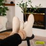 отлично согревают, при этом ноги в них не потеют, это обусловлено строением шерстяных волокон. Верхний слой шерстинки покрыт чешуйками между которыми находится значительное количество воздуха, поэтому шерстяные волокна менее теплопроводны и поддерживают постоянную температуры тела;