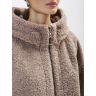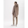Застёжка-молния, интересный капюшон-стойка, рукава-регланы, привлекающие внимание большие накладные карманы, асимметричные полукруглые края с удлинённой спинкой создают эффектный образ. Его гармонично смягчает широкий шов по всем краям изделия и тактильно приятный подклад