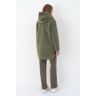Застёжка-молния, интересный капюшон-стойка, рукава-регланы, привлекающие внимание большие накладные карманы, асимметричные полукруглые края с удлинённой спинкой создают эффектный образ. Его гармонично смягчает широкий шов по всем краям изделия и тактильно приятный подклад