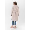 Строгий рубашечный стиль с манжетами на рукавах, планкой для пуговиц компенсируется длиной изделия, полукруглыми вырезами по краям боковым швов и поясом. Они придают образу женственности. Мягкий искусственный мех, состоящий наполовину из шерсти, хорошо согревает. Шубка утеплена мембраной WARM PRO.