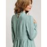 Платье для женщины или девушки – это больше чем предмет гардероба. При помощи платья женщина может продемонстрировать свой характер или настроение, подчеркнуть свои плюсы или скрыть недостатки, привлечь к себе внимание или слиться с окружающими. Очень много задач решает платье. Именно поэтому, милые женщины, не стоит себя ограничивать в желании приобрести «очередное». Оригинальный дизайн, представленной модели платья заставляет обратить на себя внимание. А – силуэт выгодно подчёркнут кокетливыми воланами с мелкой присборенностью по швам и длинной миди. Романтику в образ этого платья добавляет рюш, которая обрамляет внешний срез воротника – стойки. Колоритно и оригинально, стиль модели подчёркнут тесьмой – завязкой, фиксирующей воротник. Общему замыслу подчинена и форма рукава – фонарик. Натуральный лён, из которого выполнена модель, наделяет платье своей неповторимой жатой текстурой, в которую невозможно не влюбиться.