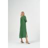 Платье прямое длинное свободное с центральной застежкой и сборкой по горловине. Рукав реглан до локтя расширенный к низу. В боковых швах карманы и разрезы.