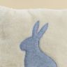 Мягкая подушка с изображением кролика выполнена из трикотажного полотна с чистошерстяным ворсом.