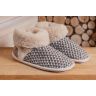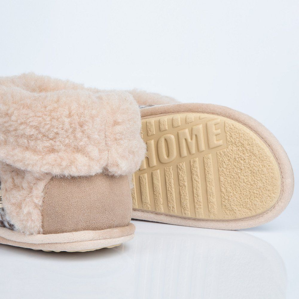 Аккуратные тапочки с лаконичным дизайном по праву претендуют на звание самого уютного предмета домашнего гардероба. Мягкий и пушистый ворс из стопроцентной шерсти надёжно согреет стопы, подарит спокойствие и расслабление. Модель достаточно просторная, будет удобна людям с разной полнотой ноги. Замшевая вставка на пятке повышает износостойкость туфель, высота фиксируется с помощью отворотов. Прорезиненная подошва (эвапора) делает безопасным передвижение даже по скользкому полу. Кроме того, изделие можно использовать в дачных условиях.