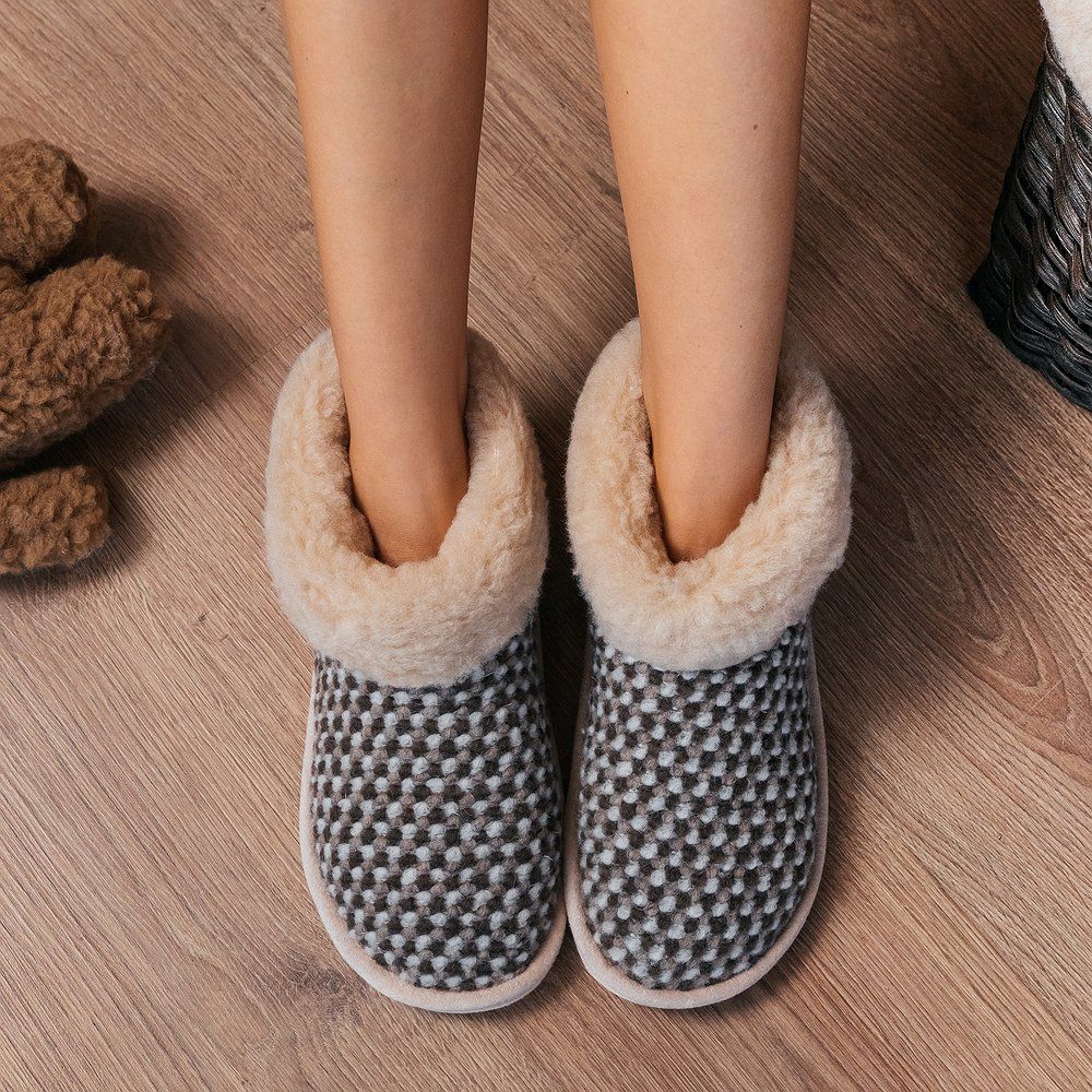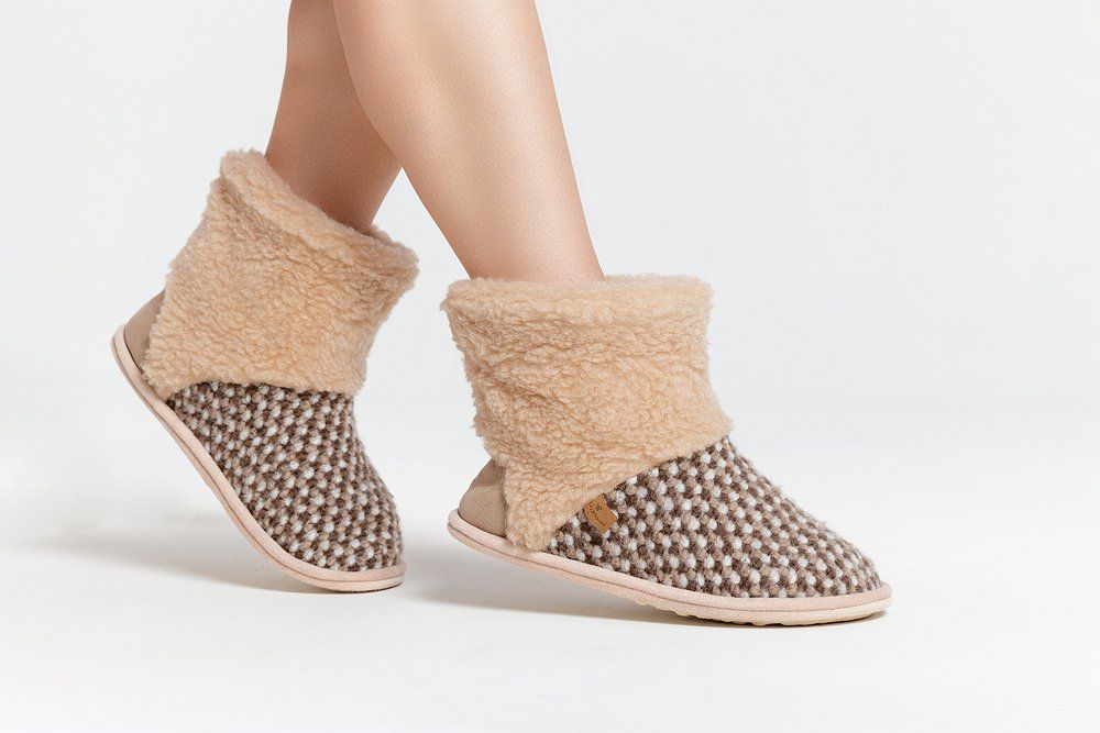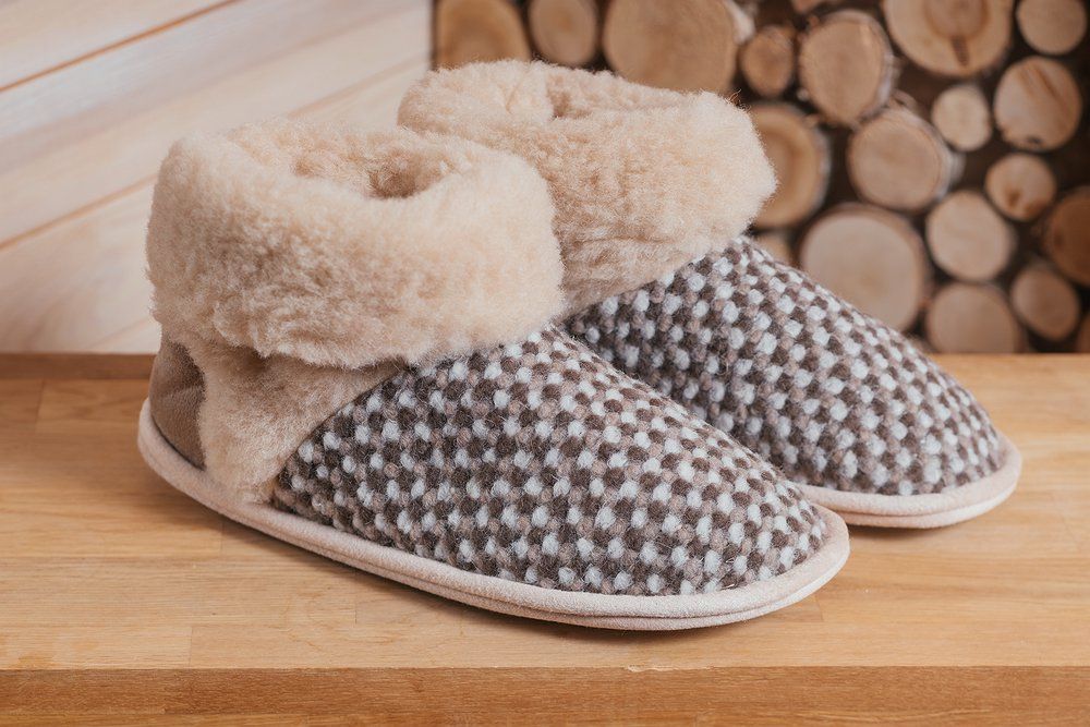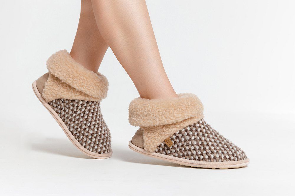 Тапочки домашние Чуни высокие бежевые из шерсти